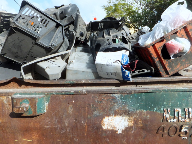 | המון פחים חלודים מלאים בפסולת של גרוטאות, מראה שכיח מאוד ברחוב בר-יוחאי וברחובות הסמוכים שימו לב לדמות בתמונה הבאה ונסו לזכור אותה עד לסיום הפוסט.