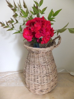 מובן שגם אני קניתי סל. נטיית הלב האישית שלי היא לסלים הגדולים מסנסני התמר, אבל בשל חשש ממחסור במקום מתאים בבית קניתי לעצמי בסופו של דבר כד יפה מנצרים שיצרה נעמי דורצ'ין. שמתי בו בקבוק פלסטיק פשוט של מים מינרלים, ובתוכו פרח וכמה עלים. זה מספיק לי בשביל להיות מאושרת במשך ימים רבים.