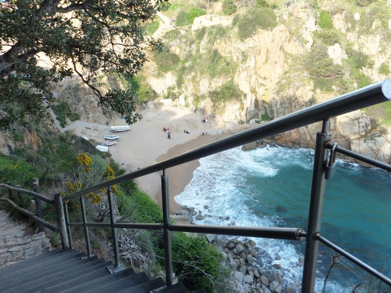 חוף El Castell מדוע הדלתות צבועות בצבעים שונים? הסיבה לזה נודעה לנו רק בהמשך היום כששטנו בסירה עתיקה מפלמוס אל תוך הים הפתוח ולאורך החוף. הדייגים היו מחדשים מפעם לפעם את הצבע של סירתם, ובשאריות הצבע שנותרו צבעו את דלת הבית. כפר הדייגים ממול, מעבר למפרץ מסלול חוף בין שתי עיירות ציוריות: קלליה ולפרנק גם כאן הלכתי ביחד עם קבוצת מטיילים מהכנס ועם מדריכה מקומית. הלכנו ממלון סט רוק שעליו אני ממליצה בכל לב. החדרים נעימים והוא יושב במקום גבוה מעל למפרץ של קלליה דה פלפרוג'ל (Calella de Palafrugell). קלליה היא עיירה אלגנטית ויפהפייה. למטיילים שאינם ממהרים כדאי לסטות מהשביל לטובת שיטוט בעיירה. בין העיירה קלליה לעיירה השכנה לפרנק (Llafranc) יש קטע שביל אטרקטיבי. שביל רחב, נוח ומתון עולה מקו המים אל המצוק. המראה של קו החוף מלמעלה נהדר. אחרי קטע הליכה קצר במרומי המצוק – גרם מדרגות ארוך יורד אל העיירה לפרנק. גם גרם המדרגות הזה רחב ונוח. הירידה אל Llafranc ******* לסיום – רעיון לחובבי ההרפתקאות, עזי הנפש ואמיצי הלב: באותו כנס שבו השתתפתי טיילו המוני בלוגרים של טיולים, בעיקר אמריקאים, ואחרי הכנס כולם סיפרו על חוויותיהם בבלוגים שלהם. אחד היעדים שזכו לכתבות נלהבות ומצולמות היטב הוא מסלול הויה פרטה בצוקים שבקרבת Sant Feliu de Guíxols בחוף שנקרא Cala de Moli. אם אתם מחובבי הז'אנר תפתחו את הקישורים, תתרשמו מהתמונות המדהימות ותחלצו את הפרטים הפרקטיים. |