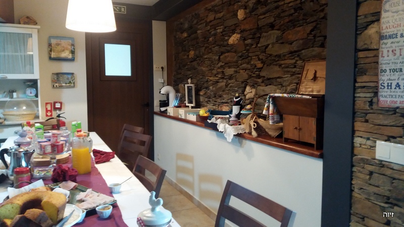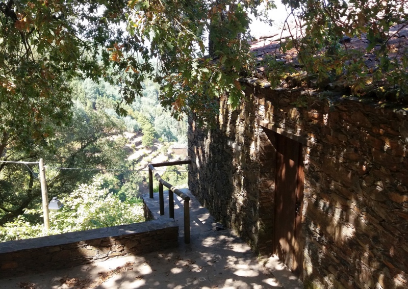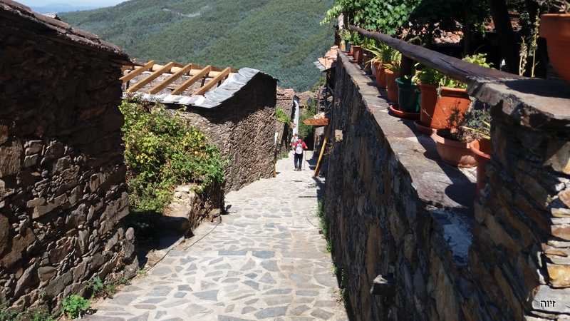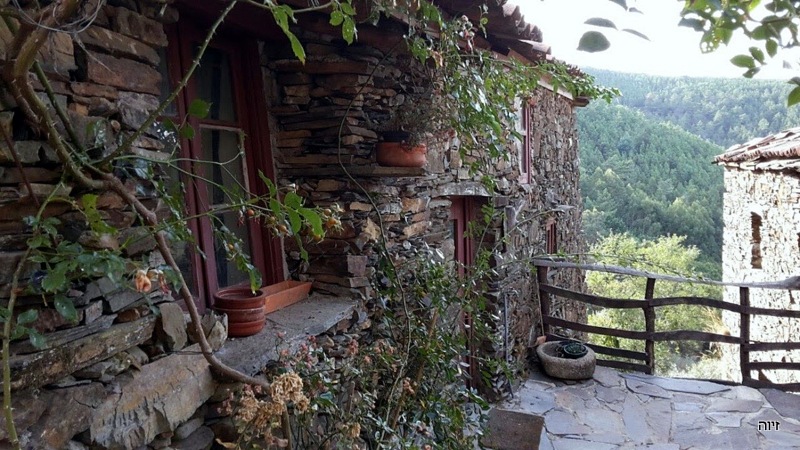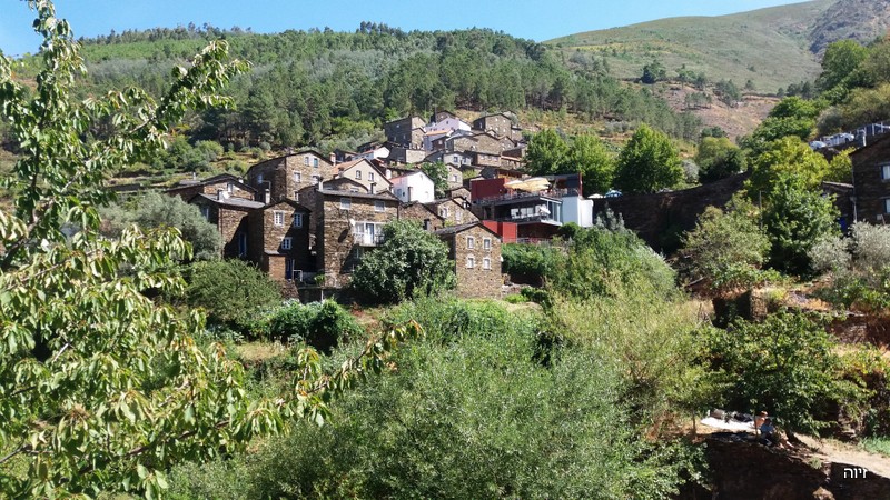 הלכנו ברגל מהכפר פיודאו אל הכפר הסמוך Foz d'Agua. הבתים היפים של פיודאו הלכו והתרחקו, ובמדרון שממול ליוו אותנו לאורך הדרך הטרסות העתיקות. הר מדרגות. חבל שהטרסות ננטשו, ובכל זאת זה יפה. ![]() ליד פוז ד'אגואה יש חוף רחצה ליד הנחל. גשרי אבן וגשר אחד תלוי שאינו בשימוש כיום משמשים כתפאורה. לאחר בילוי במקום חזרנו לפיודאו בעזרת המכונית שהעמדנו בצד השני של המסלול. למטיילים במכונית אחת יש מסלול מעגלי מאוד מוכר, משולט ופופולרי. החזרה היא בגדה הנגדית של הנחל והמראות בדרך בוודאי אחרים. הפתעה: המלון "שלנו" בנוי בחלקו מאבן צפחה נסענו אל משכננו החדש במלון משפחתי, בקצה סמטה צרה בכפרון (Alqueve) היושב בכביש צדדי, כמה קילומטרים מעיירת השדה ארגניל (Arganil). "הכפר שלנו" אינו נמנה עם רשימת כפרי הצפחה הידועים, אולם אחדים מבתיו בנויים מצפחה או שחלק מן הקירות בנויים מהצפחה. זהו חומר בנייה המצוי בשפע באזור, ובהמשך הטיול אנו עתידים לפגוש אותו שוב ושוב, גם בצפון. אמנם היה עלינו לגרור את המזוודות מהחנייה אל המלון דרך סמטה צרה, אולם השהות במלון היתה נהדרת ותפורה לצרכינו. מבחינתנו הגענו הביתה. מלאנו את כל חמשת חדריו ונהנינו משטחיו הציבוריים.